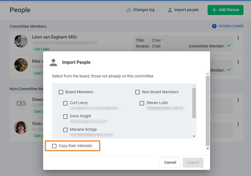 IF you are adding someone to a subcommittee who is already on the main board, they can be imported with their interests.
