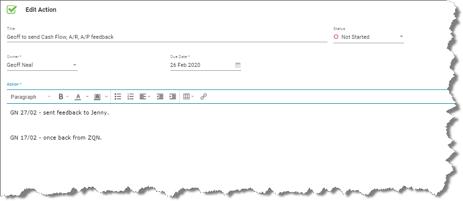 "I consider it essential that people assigned Actions can add progress updates on these. These updates should be date and time stamped"